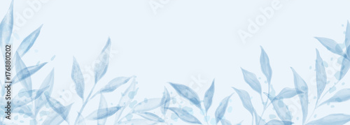 © Hulinska Yevheniia, Naklejka premium Abstract art background vector. Luxury minimal style wallpaper with Blue Branch and botanical leaves, Organic shapes, Watercolor. Vector background for banner, poster, Web and packaging.