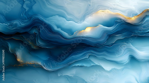 © Siasart Stock, Obraz premium Abstract Art: Blue and Gold Swirls with Liquid Marble Effect