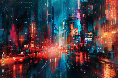 © rabbizz77, Naklejka premium Abstract art of a bustling cityscape at night