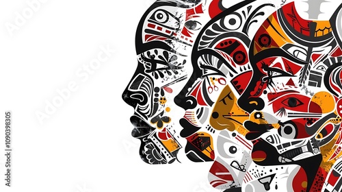 © tanawatbig, Fototapeta premium Abstract Art of Multicolored Faces and Patterns