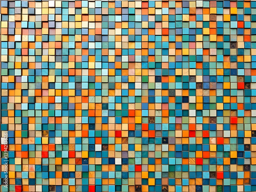 © RisanRisan, Fototapeta premium Abstract Art of Small Colorful Squares Arranged in Random Pattern Creating Vibrant Geometric Composition