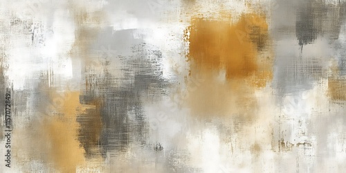 © MrSmall, Fototapeta premium Abstract art painting with gray, beige, and gold brushstrokes.