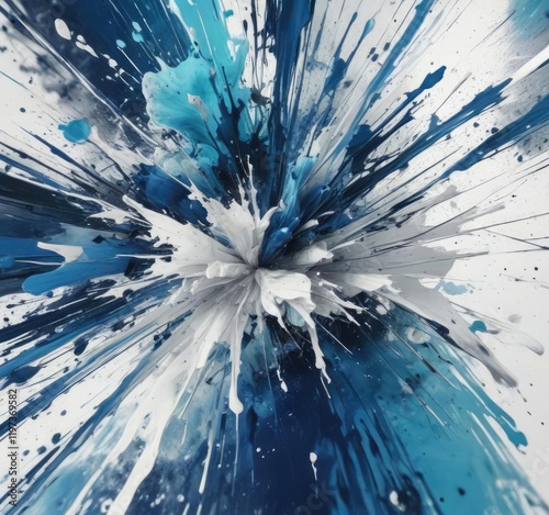 Obraz premium Abstract art with blue and white hues and splatters, white, unique