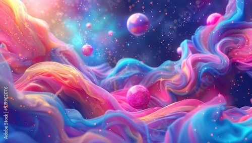 © zaen_studio, Obraz premium Abstract Art with Floating Spheres