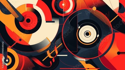 Fototapeta premium Abstract Art with Red, Orange and Black Circles.