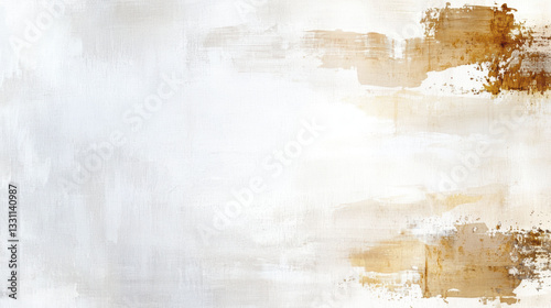 © Somporn Na Ubon, Obraz premium Abstract art with soft white and gold brush strokes creates serene atmosphere