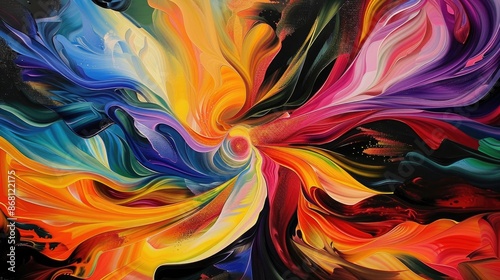 Obraz premium Abstract art with swirling vibrant colors and dynamic shapes, evoking...