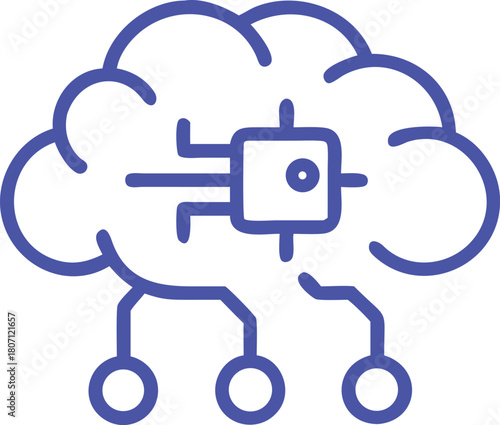 © ovik, Obraz premium Abstract Artificial Intelligence Cloud Icon in Blue Outline on a White Background.