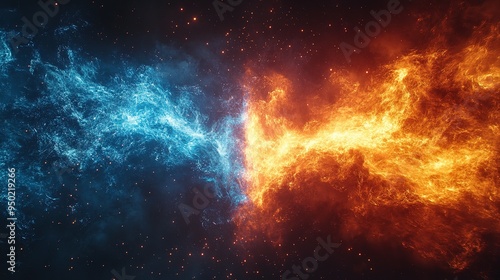 Fototapeta premium Abstract Artistic Depiction of Fire and Ice Colliding