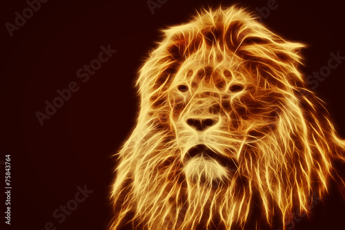 Obraz premium Abstract, artistic lion portrait. Fire flames fur