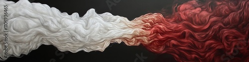 Obraz premium Abstract artwork featuring swirling white and red textures on a dark...