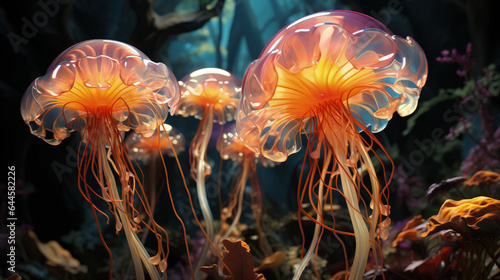 Fototapeta premium Abstract artwork of A jellyfish, Complementary, Honeycomb pattern, Chaotic mood.