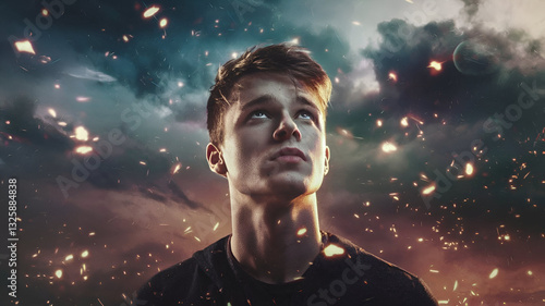 © Me, Fototapeta premium Abstract Artwork with Blurred Person and Glowing Particles technology concept