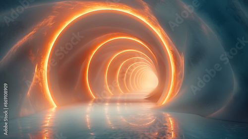 © lichaoshu, Obraz premium abstract background aisle with glowing circles