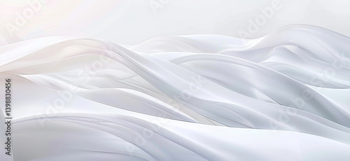 © Peopleimages - AI, Naklejka premium Abstract, background and wave with white for art with pattern with flow cloth for satin fabric. Creative, design and banner for wallpaper with silk texture with material folds, artistic and elegance