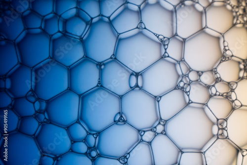 © AnnaJannah, Naklejka premium Abstract background bio technology, macro photography foam and water with gradient background. Molecule multicolor backgorund