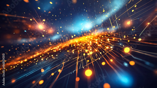 Naklejka premium abstract background, bright lines and dots against dark background, in motion...
