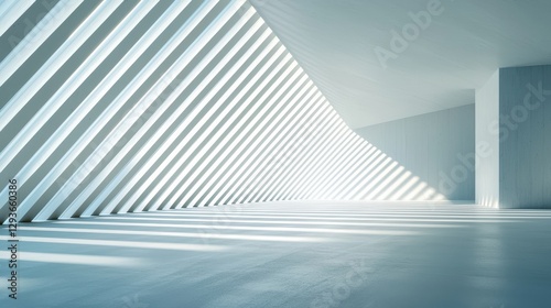 Obraz premium Abstract background Bright, modern interior featuring diagonal light patterns on a minimalist floor.