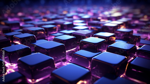 © Anchalee, Obraz premium Abstract background 3d colouful glassses box pattern with glowing lights,Concept for New Techology wallpaper background Generative Ai.