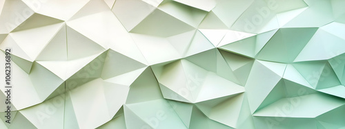 Obraz premium Abstract background design featuring layered triangles in pale green and...