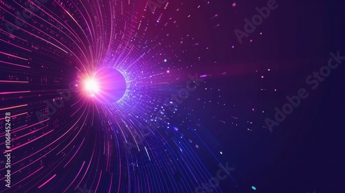 Naklejka premium abstract background, digital art, light effects, cosmic tunnel, vibrant colors, modern design, glowing particles, sci fi concept, purple hues, dynamic lines, futuristic visuals, stunning graphics, en