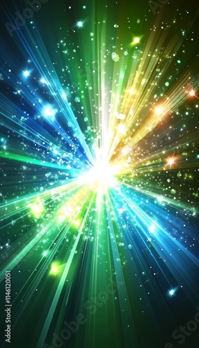 © Ilja, Fototapeta premium Abstract Background, Exploding Light Speed Motion With Green, Blue, Yellow Color, Digital Art