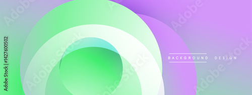 © antishock, Obraz premium Abstract background features layered circular shapes. Colors transition from green, turquoise to purple creating soft gradients. Minimalist design suitable for digital projects.
