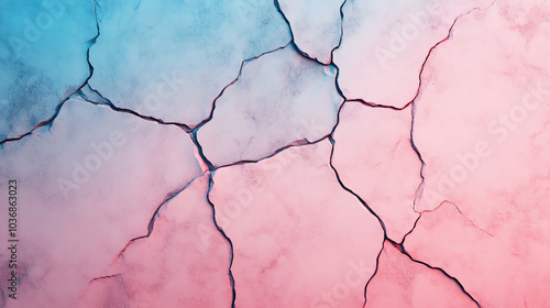 © Marketplace, Obraz premium Abstract background featuring a cracked texture with a gradient of blue and pink colors, perfect for design projects and creative applications.