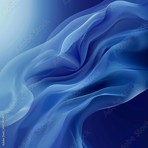 © Strother, Fototapeta premium Abstract background featuring elegant, flowing waves of translucent blue smoke, vapor, or light fabric against a gradient blue backdrop. Ethereal smooth design.