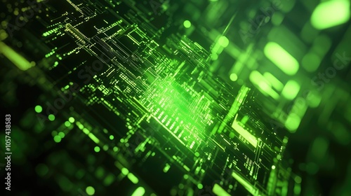 © AIArtistry, Naklejka premium Abstract background featuring green digital technology elements