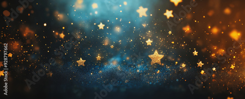 © Mr. Stocker, Fototapeta premium Abstract background featuring shimmering gold star particles in a cosmic setting