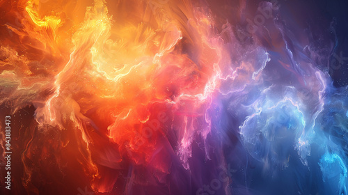 Obraz premium Abstract background featuring vibrant swirls of red, orange, blue clouds,...
