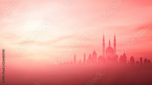 Fototapeta premium Abstract Background for Eid Ul Fitr Celebration with Soft Rose Tones and Silhouette Design