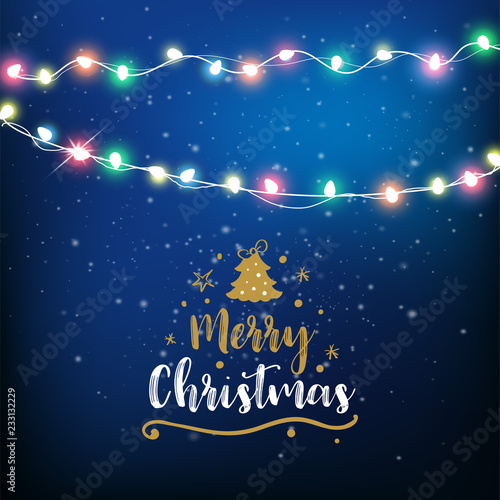 Fototapeta premium Abstract background for Merry Christmas or Happy New Year Card with Christmas lights and snowflakes. Vector illustration