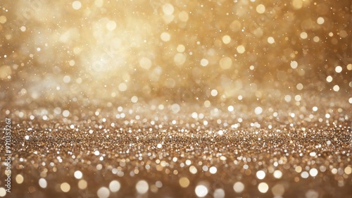 © Panuwat, Fototapeta premium Abstract background golden hue filled small round white Blurry b
