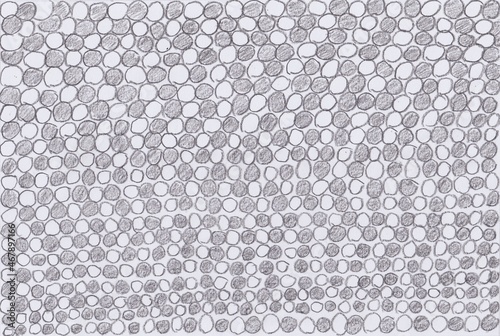 © Sudakarn, Fototapeta premium Abstract background. Gray and white hand-drawn circles pattern. Doodle circles pattern background. Shaded circles pattern.