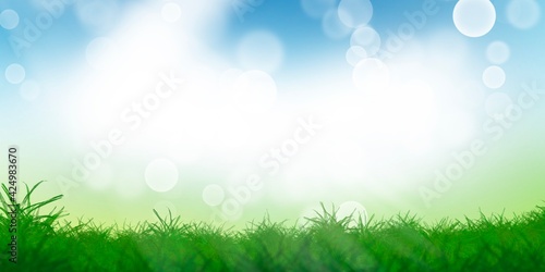 © NARANAT STUDIO, Obraz premium Abstract background Green leaf with blue sky and bokeh light background