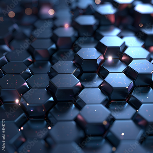 © ShahinAlam, Obraz premium Abstract background hexagon pattern with glowing lights