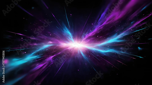 Fototapeta premium Abstract background in blue and purple neon glow colors on black