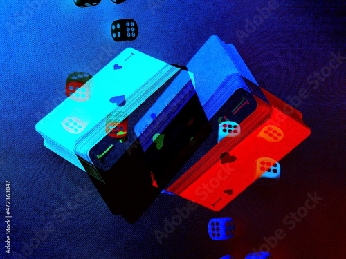 Fototapeta premium Abstract background in red, green and blue, with a spectacular rhythm and inserts. A surreal image in a modern style. For your wallpapers, art projects and wo