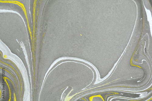 Obraz premium Abstract background. Ink marbling texture. Grey, yellow and white. Hand drawn marble illustration, ebru aqua paper and silk print. Traditional Turkish ebru technique. Painting on water.