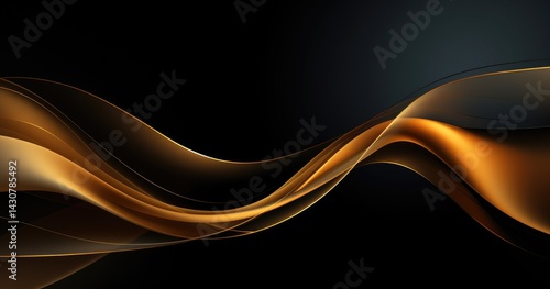 © Waa, Fototapeta premium abstract background, lines in gold color on a black background, lines with a gradient effect from light to dark, lines forming waves and curves