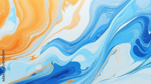 © Fang, Fototapeta premium Abstract background of acrylic paint in blue and orange tones. Liquid marble pattern., generative ai