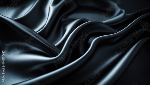 © NFTNexus, Obraz premium Abstract background of black nacre wave silk fabric. Horizontal texture with copy space.