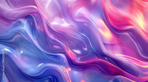 Obraz premium Abstract background of blue, purple and pink iridescent liquid waves. 3D render of flowing vibrant colors for wallpaper, design, and artwork.