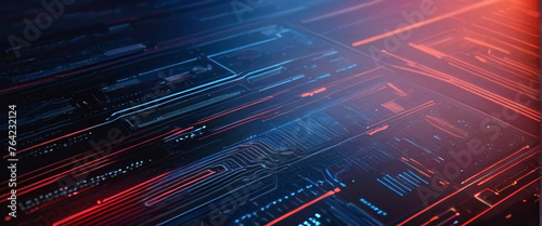 © ezra, Obraz premium abstract background of coding software for geoscience, red and blue tone