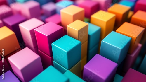 © Rstm, Obraz premium Abstract background of colorful cubes stacked together.