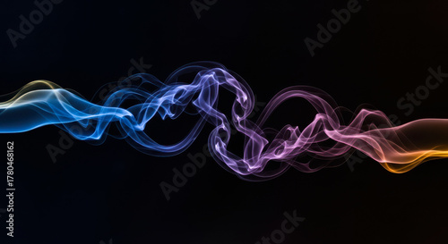 © Celt Studio, Obraz premium Abstract background of colorful smoke wave on black for concept of art, magic, creativity, or dynamic motion