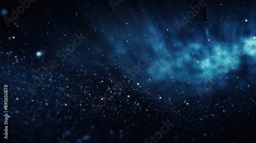 © venusvi, Naklejka premium Abstract background of dark blue particles and soft blurred glow.