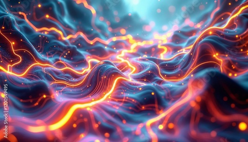 © Aimag, Obraz premium Abstract background of flowing data. Concept of digital, technology, and energy.